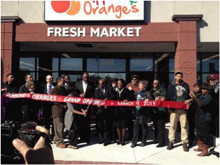 One of the development projects financed by TRF that recently opened is Apples and Oranges, a new East Baltimore grocery store providing fresh healthy food in a food desert. The owners of Apples and Oranges believed very much in local hiring and worked with BIP partners to make that possible. The Mayor’s Office of Employment Development helped place 12 of the 20 new employees as well as 3 others linked to security positions connected to the store. Hired candidates came from community workforce access points and training providers including Central Baltimore Partnership/Greater Homewood, East Baltimore Development, as well as area sector based training partners Humanim(retail training) and St. Vincent de Paul (culinary/food training). The BIP also provided a small training grant so the new employees could receive ServSafe training.